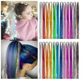 Plabbdpl 12 Pieces Hair Tinsel Colourful Hair Strands 12 Colours Tinsel For Hair With Tool Glitter Strands Hair Rainbow Hair Extensions Synthetic Hair For Braiding Party Decoration Amazon De Beauty